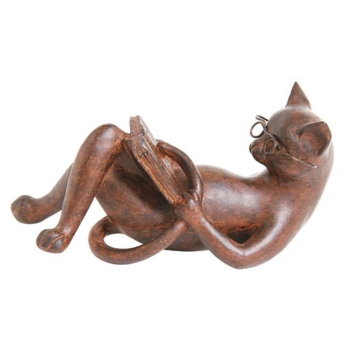 のんびりくつろぎながら読書をしているネコのオブジェです。 シックで大人っぽいアンティーク調で重厚感がありますが、素材はレジンなので軽く、どこにでも気軽に飾る事が出来ます。 |