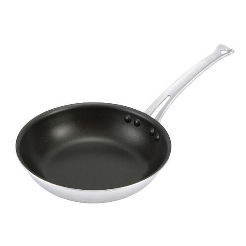 純度の高い国産アルミ材を使用したアルミ製のフッ素樹脂加工のフライパンです。 ハンドルはステンレスで熱くなりにくいです。 |