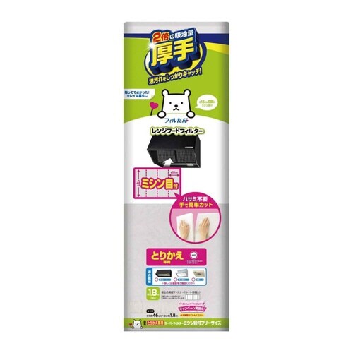 手で簡単にカットできるミシン目付きの換気扇フィルターです。 約15cm間隔でミシン目が入っているので60cm・75cm・90cm、どの幅のレンジフードにも取り付けられます。 |