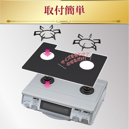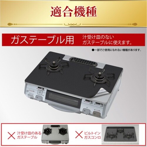 レンジトップカバーFlat!の2枚入りです。 汁受け皿のないガステーブルであれば、ほとんどの機種に対応します。 製品をお好みのサイズにカットできるプラスチックナイフ付きです。 |