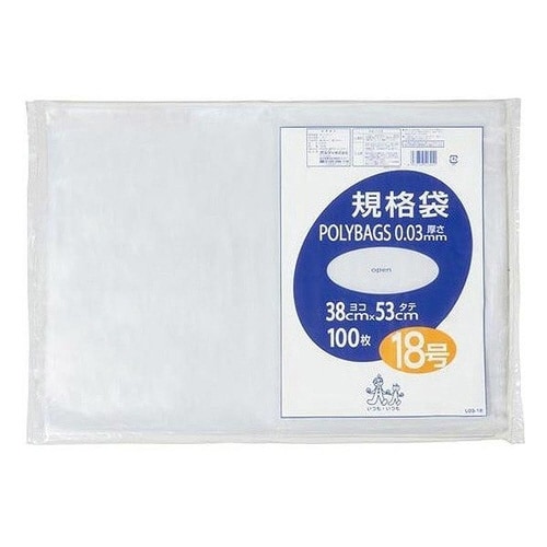 柔らかくよく伸びるLDPE製のポリ袋です。 透明のポリ袋100枚入りです。 規格袋18号でサイズは約縦53×横38cm、ティッシュボックスが5つ入るサイズ感です。 |