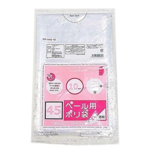 破れにくく丈夫で使いやすい、透明なポリ袋10枚入りです。 1枚あたりの容量は45Lです。 燃やしても有害な塩素ガスは発生しません。 |