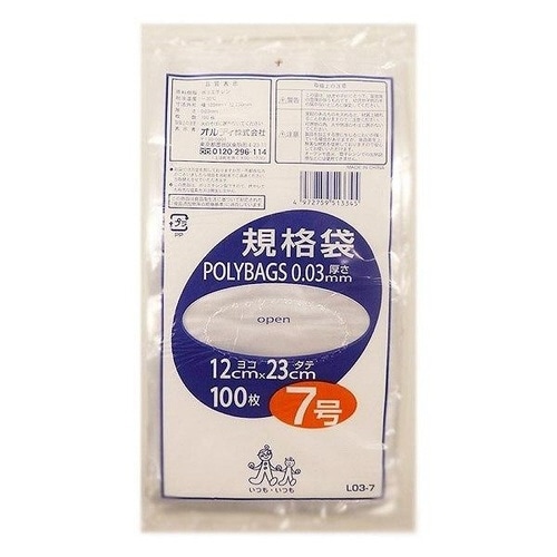 柔らかくよく伸びるLDPE製のポリ袋です。 透明のポリ袋100枚入りです。 規格袋7号でサイズは約縦23×横12cm、A4用紙3つ折りが入るサイズ感です。 食品衛生法規格基準適合品で安心の品質です。 |