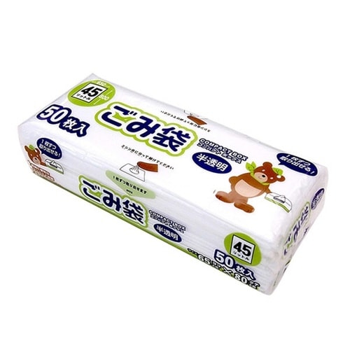 半透明のポリ袋50枚入りです。 一枚あたり容量約45Lです。 容量の多いBOXタイプでティッシュ式に取り出せます。 コンパクトスリムタイプなので場所を取りません。 カサカサとした感触が特徴的です。 |