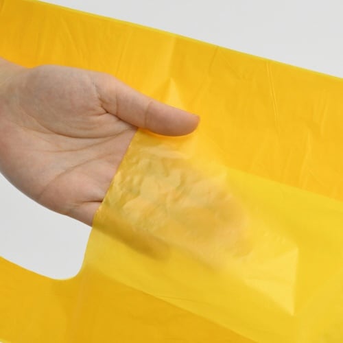 取っ手・マチ付きレジ袋20枚入りです。 A4が入る使いやすいサイズです。 中身が見えにくい、イエローのカラー手提げ袋です。 シャカシャカとした感触が特徴的です。 引っ張りに強いです。 |