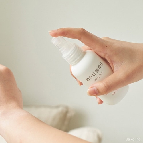 やわらかいファブリックの香りを広げる、「moumou」ボディミストです。 7種の植物エキス(天然保湿成分)、ヒアルロン酸、コラーゲンを配合しており、身体や髪の毛をしっかり保湿します。 |