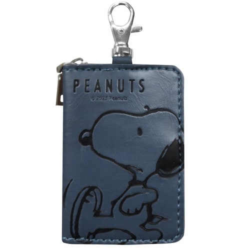 ネイビーの背景にスヌーピーのイラストがポイントのスマートキーケースです。 裏側は透明ウィンドウでスマートキーを楽に操作できます。 ナスカン付きなのでカバンやベルトループにぶら下げることもできます。 |