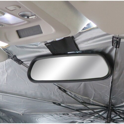 傘のようにパッと開くだけで簡単に設置できるサンシェードです。 日差しをシャットアウトして車内温度の上昇を軽減します。 駐車中の車がすぐに見つかる可愛いデザインです。 |
