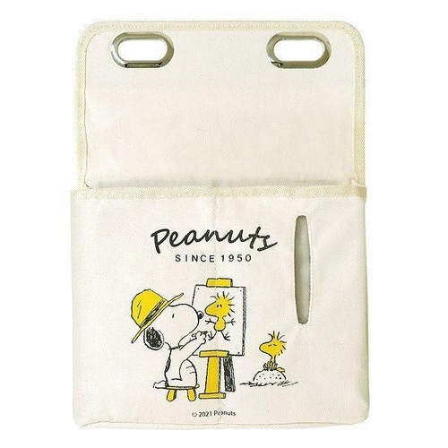 ティッシュボックスとウェットティッシュの両方を収納できるポケットです。 ヘッドレストポールに簡単に取り付けできます。 スヌーピーとウッドストックのイラストが可愛くて癒されます。 |