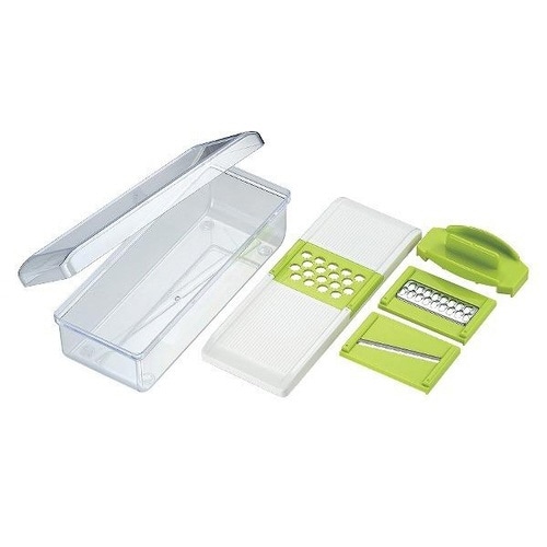 スライス・太千切り・おろし、と多目的に使える3通りの調理ができます。 付け替えが簡単な、スライド式の替刃です。 収納の際は、全てのパーツがすっきりコンパクトに収まります。 |