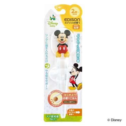 リングに指を入れるだけで、自然に正しくお箸を使うことができます。 2歳から就学前までのお子様向けのお箸です。 立体のミッキーが、お食事を楽しくサポートします。 |