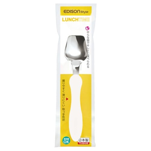 取っ手が握りやすい形状のスプーンです。 成長に合わせて正しい持ち方をサポートします。 スプーンは平らな先端がお皿の底にフィットするので最後までキレイにすくえます。 |