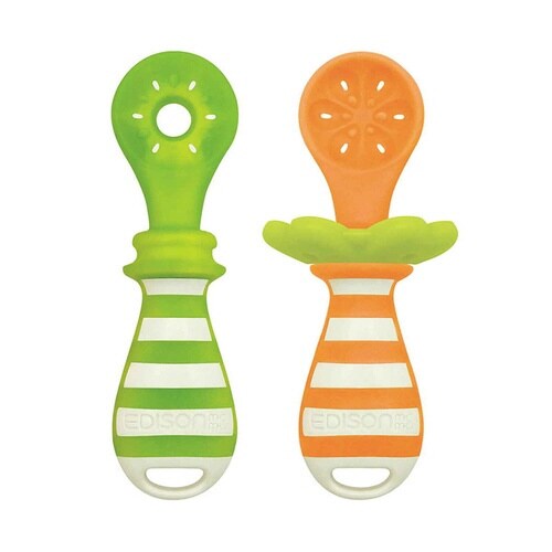 スプーンデビューにぴったりのスプーンです。 果肉モチーフのでこぼこがしっかりキャッチします。 小さな手でも持ちやすい形です。 四つ葉のモチーフは取り外せます。 |