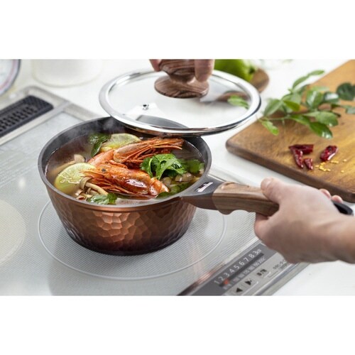 見た目と実用性を兼ね備えた片手鍋18cmです。 少人数の汁物や、野菜の下ごしらえ、煮物作りなどにおすすめのサイズです。 槌目加工なので、熱伝導率が良く、食材に熱をムラなく伝えます。 |