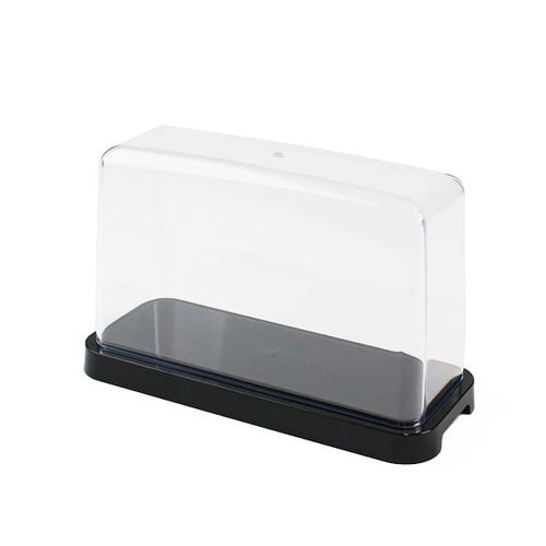 大切なコレクションをホコリやゴミから守りつつ飾れるケースです。 カバーはスチロール樹脂の一体成形で生産されていて、肉厚で丈夫です。 カバーもベースも丸みを帯びたデザインです。 |
