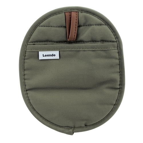 落ち着きのあるワンカラーで使いやすいポットホルダーです。 裏面がゴム製なので、熱が伝わりにくいです。 手を入れて鍋つかみとして使用することができます。 |