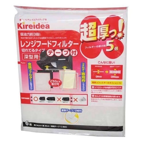 レンジフードに取り付けることで、少しずつ積み重なる油汚れをしっかり受け止め、レンジフードの汚れを防止する超厚手のフィルターです。 |