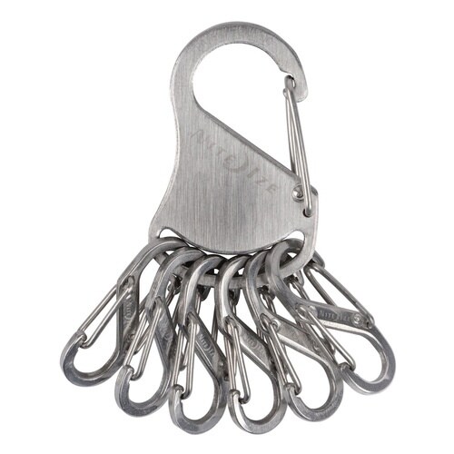 カギやキーアクセサリーをスッキリまとめられるステンレス製カラビナです。 カバンやベルトループに取り付けるのに最適なコンパクトサイズです。 6つの小型エスビナーは1つ1つ取り外しができます。 |