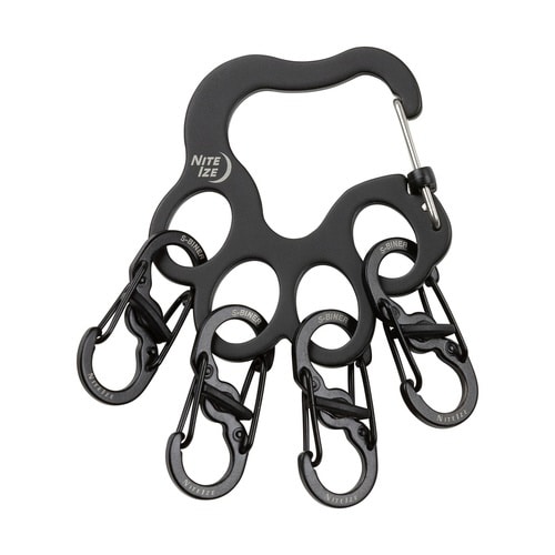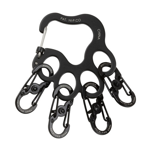 可愛い犬の足型キーホルダーです。 スライドロック機能の付いた安全・軽量カラビナーです。 回転させるだけでロックできるマイクロロックエスビナーが4つ付いています。 |