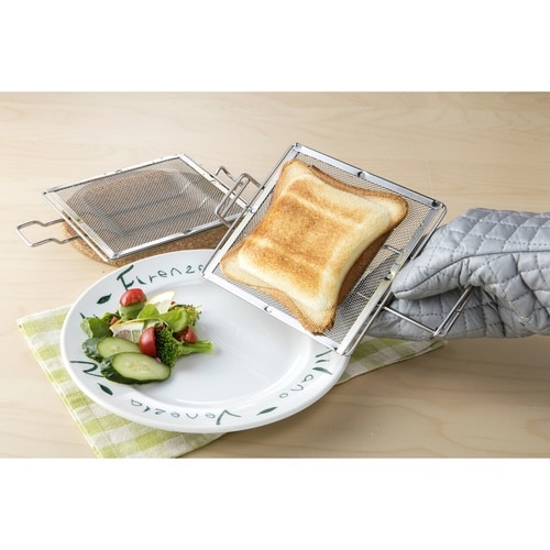 トースターや魚焼きグリルに入れてほったらかすだけ 上下のアミが取り外せるから使いやすい 食パンの薄さに合わせて調整できる おうちで気軽にホットサンドを食べたい方に |