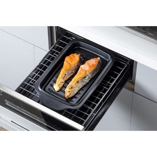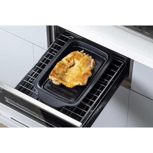 少ない油で揚げられるホーロー製の角型天ぷら鍋とバットにもなるトレーのセットです。 内側の段で油量の目安がわかりやすいです。 温度変化が少なく、揚げ物調理に最適です。 |