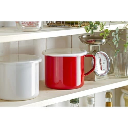 保存容器 ホーローフードストッカーハンドル付 丸型 14cm 1.9L ガス火専用 レッド