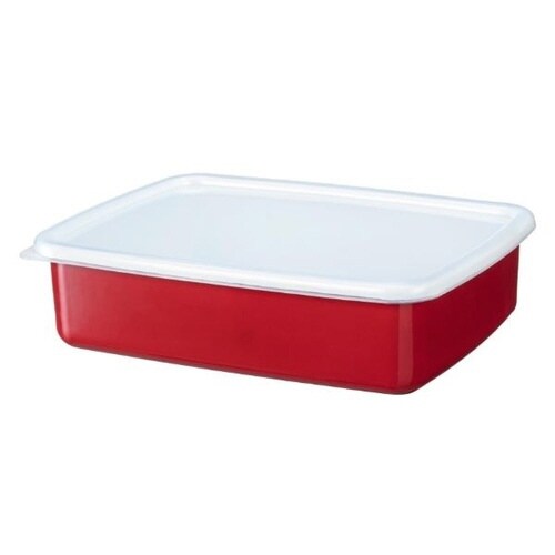 保存容器 1.8L ホーロー スタッキングできる 角型 L ホーローフードストッカー レッド レッド