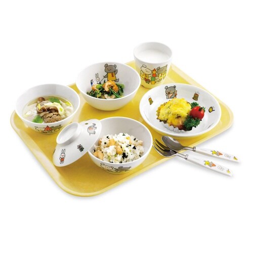 優れた耐久性のメラミン樹脂製プレートです。 名作絵本のキャラクター、こぐまちゃんの絵柄です。 絵柄が剥がれにくいミラー成形法を採用しています。