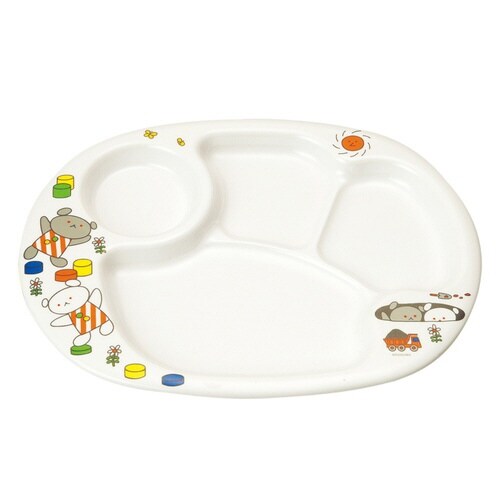 優れた耐久性のメラミン樹脂製ランチプレートです。 名作絵本のキャラクター、こぐまちゃんの絵柄です。 絵柄が剥がれにくいミラー成形法を採用しています。 |
