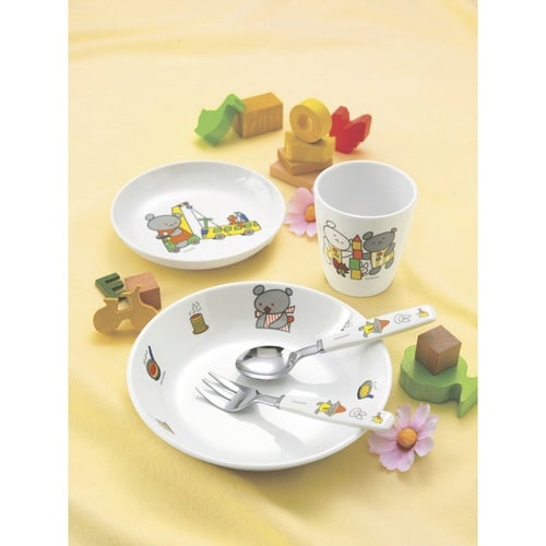 優れた耐久性のメラミン樹脂製です。 名作絵本のキャラクター、こぐまちゃんの絵柄です。 絵柄が剥がれにくいミラー成形法を採用しています。 |