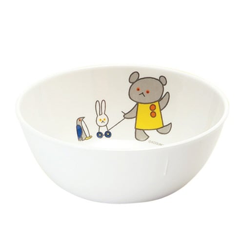 優れた耐久性のメラミン樹脂製ボウルです。 名作絵本のキャラクター、こぐまちゃんの絵柄です。 絵柄が剥がれにくいミラー成形法を採用しています。