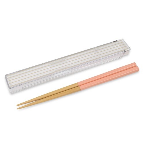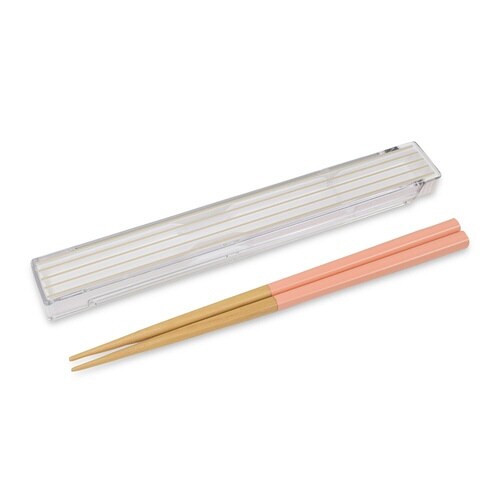 お箸と箸箱のセットです。 スライドした本体が折れ曲がることでお箸が取り出しやすい構造です。 一体型の箸ストッパー付きでお箸がカタカタと音が鳴るのを防ぎせぎます。 |