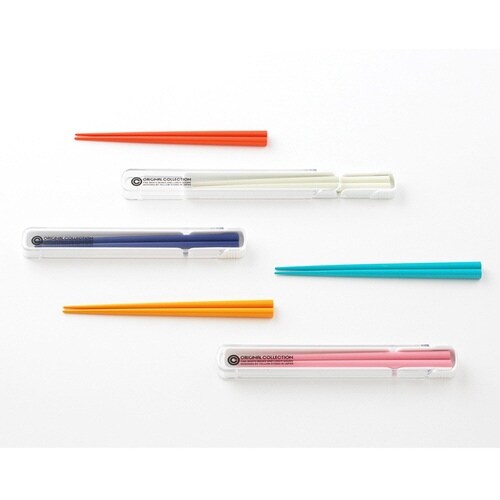 スライドした本体が折れ曲がることでお箸を取り出しやすくしました。 折り曲げ部分は耐久性があり、メーカーの安全基準に基づいた10万回の折り曲げテストをクリアしています。 |