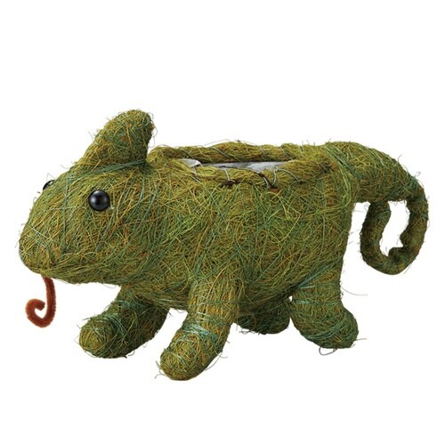 チャームポイントがたくさんな「カメレオン」の植木鉢です。 カメレオンの舌としっぽは好きな角度で自由に曲げられます。 背中にお気に入りの観葉植物を入れて飾れます。