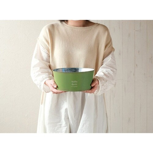 植木鉢 ハウスプランツブリキ 直径23cm×10.5cm グリーン