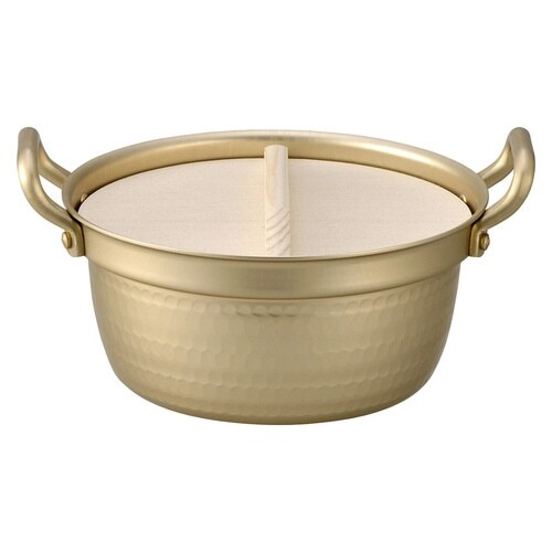 金色の見た目がレトロな雰囲気の両手鍋18.5cmです。 日本の一般家庭で使いやすい小さめのサイズです。 重さ443gと軽量設計です。 熱まわりが優れているので、調理時間やガス代節約にも期待できます。 |
