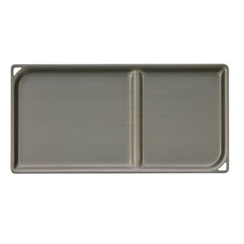 「TreaTray」(トリートレイ)シリーズのスクエア型トレーです。 アルミの特性を活かし、扱いやすさにもこだわったアルマイト加工が施されています。