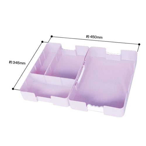 おどうぐばこだけでなく、手さげを組み合わすことで、幅広の学校の机の引き出しとしても使えます。 仕切り板2枚の位置はお好みで変えられます。 |