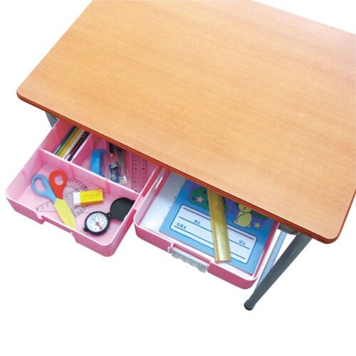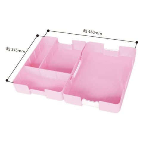 おどうぐばこだけでなく、手さげを組み合わすことで、幅広の学校の机の引き出しとしても使えます。 仕切り板2枚の位置はお好みで変えられます。 |