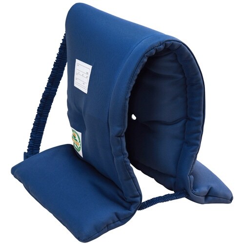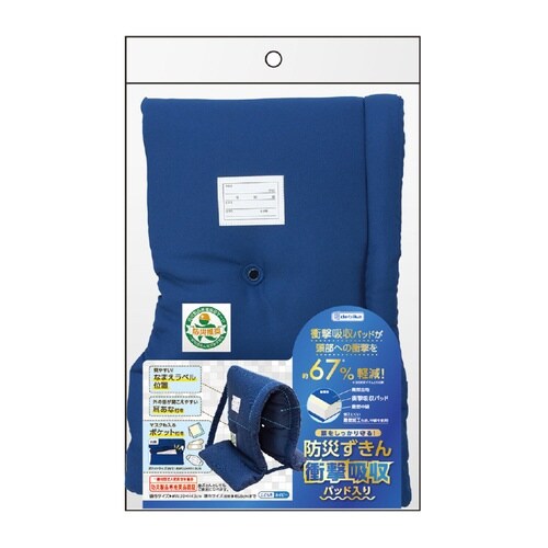 頭部への衝撃を軽減する防災頭巾です。 内ポケット付きで難燃性素材を使っています。 別売りの収納袋で背もたれとしても使用できます。 災害時にサッと名前が確認できる位置にネームラベルが付いています。 |