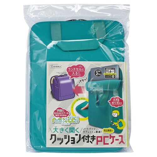 PCケース 大きく開くクッション付き 11.6インチ アクアグリーン