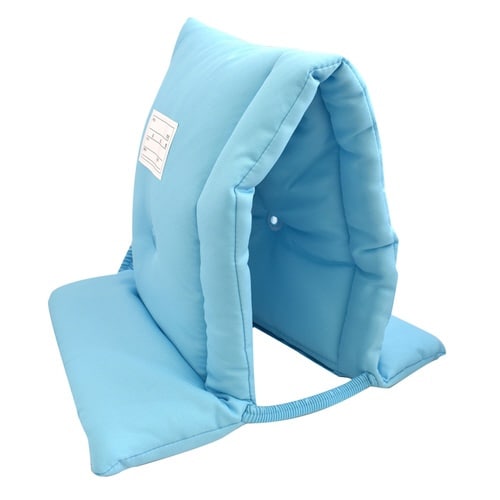 内ポケット付きで難燃性素材を使ったカラフルな防災頭巾です。 別売りの収納袋で背もたれとしても使えます。 災害時にサッと名前が確認できる位置にネームラベルが付いています。 |