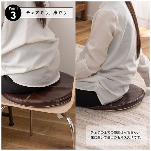 ヴィンテージな雰囲気の丸型シートクッションです。 貴重な天然皮革を再生利用した環境に優しい素材「ボンデッドレザー」です。 椅子での使用はもちろん床置きで座布団としての使用もオススメです。 |