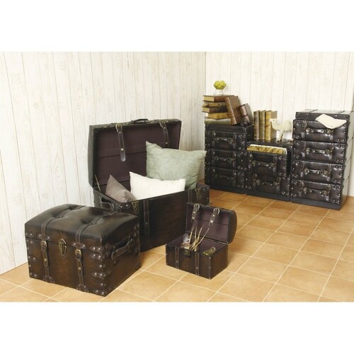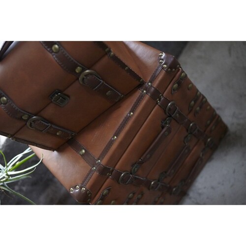 小物入れ 収納ボックス 宝箱 レザー調 ブラウン