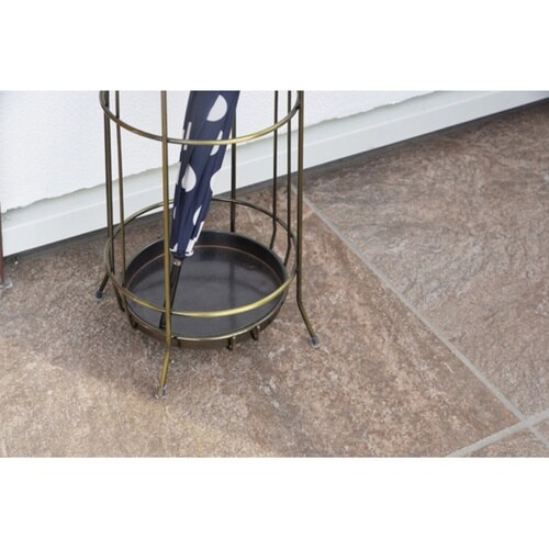 傘立て 屋内 円柱 スチール 脚付き アンティークゴールド