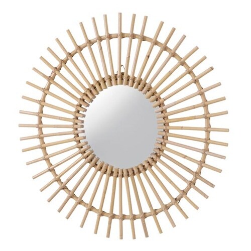 ミラー 幅60cm ラタン 籐 かがみ 鏡 ウォールミラー 壁掛け