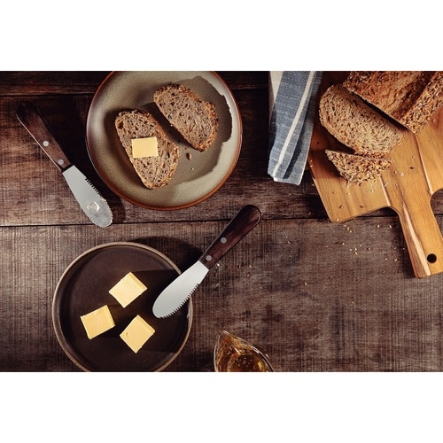 温かみのある木製ハンドルのバターナイフです。 天然木でありながら、食洗機で洗うことができます。 ヘラ部分のギザ刃でスムーズにバターを削れます。 |
