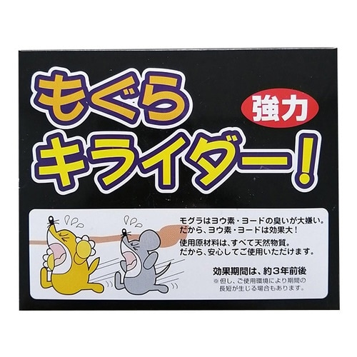 環境に優しい「ヨード」の臭いで作物を荒らすモグラを追い払います。 地表より10cm位の深さに埋めるだけの簡単作業です。 農作物をはじめ、あらゆる植物に安心してお使いいただけます。 |