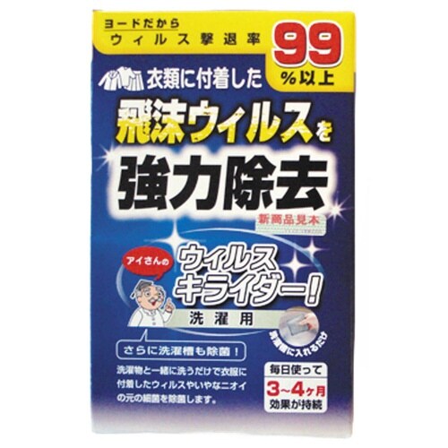 天然素材のヨードを使用した洗濯槽と衣類の除菌・消臭剤です。 洗濯物と一緒に洗うだけで、衣類に付着したウィルスや嫌な臭いの元の細菌を除菌します。 |
