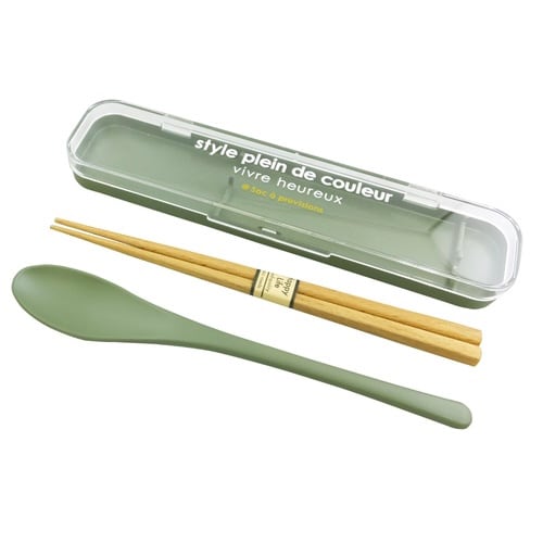 お弁当にかかせないお箸と、丼ごはんやスープにも使いやすいスプーンのセットです。 スプーンは食べやすいスリムタイプ、お箸は温かみのある天然木製です。 |